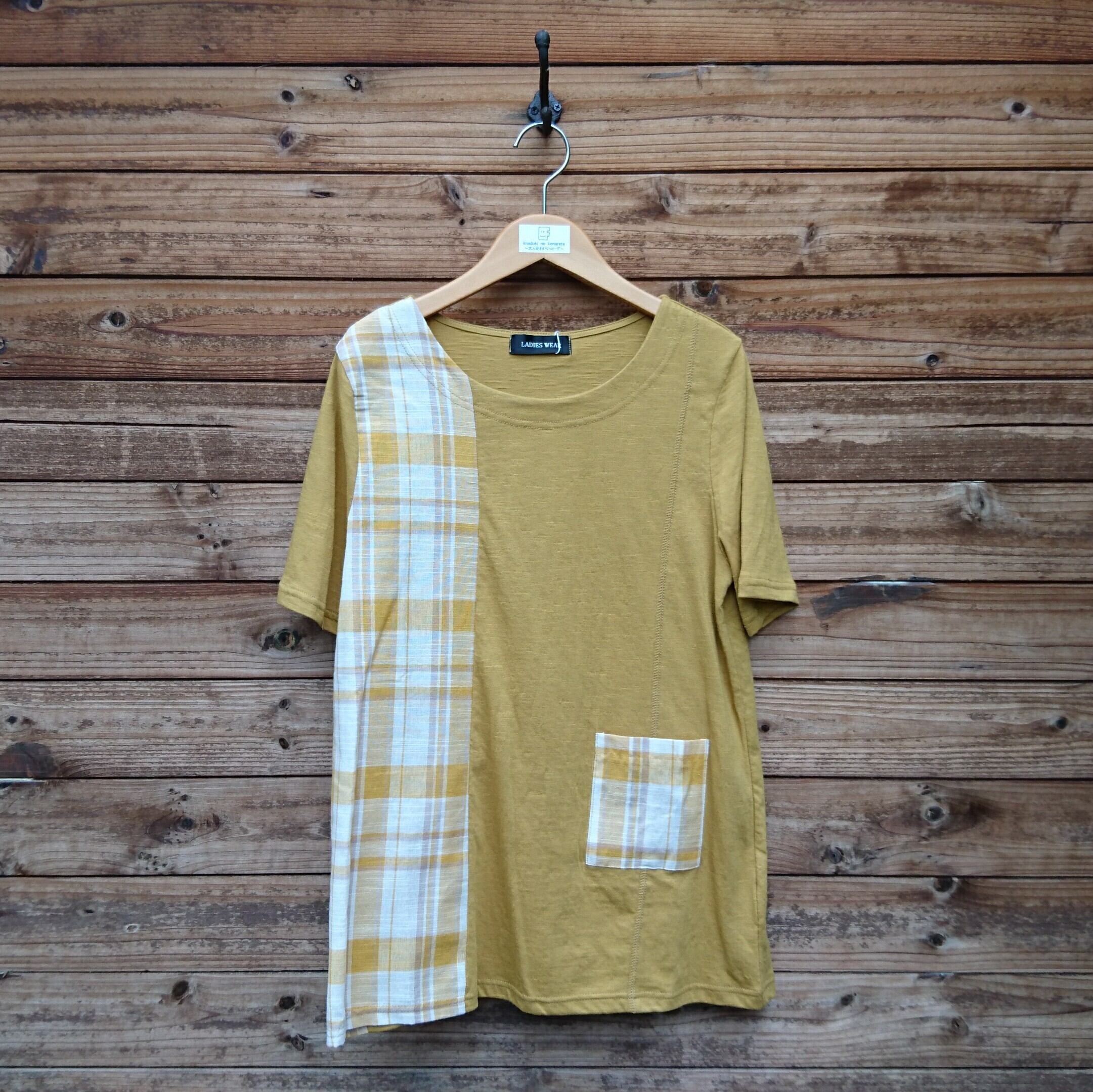 大人カジュアルが詰まったアラカンファッション 夏のチェック柄を楽しむ異素材切り換えTシャツ