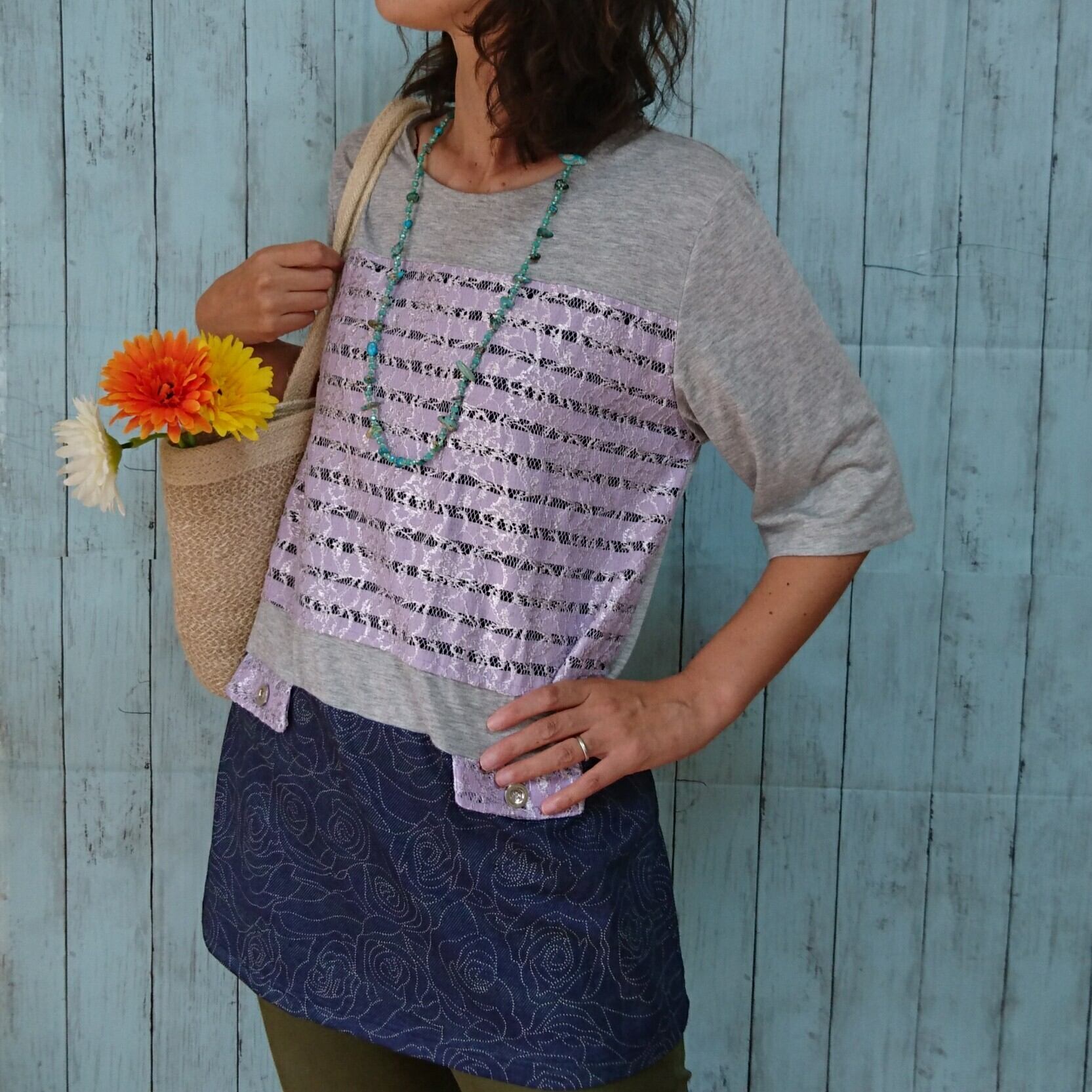 ラベンダー×グレー×ネイビーの一枚でカラーコーデ
