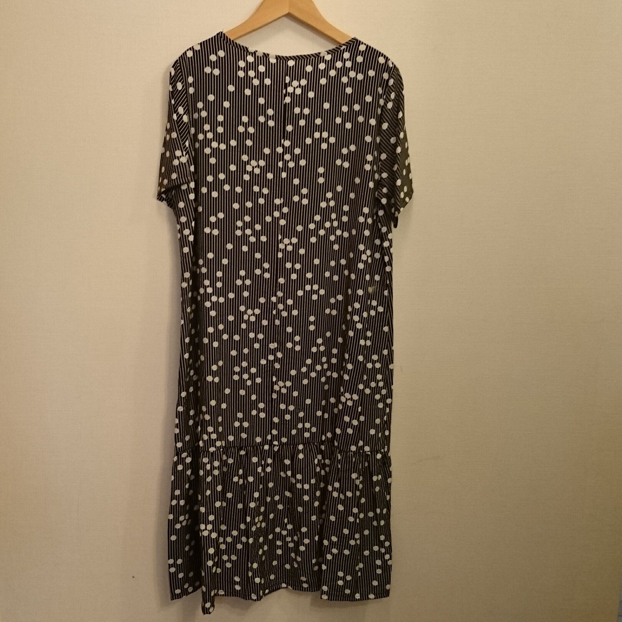 ご近所スタイルをアップデートする アラカンファッション ストライプとドットの裾フレアワンピ